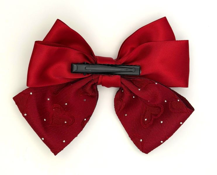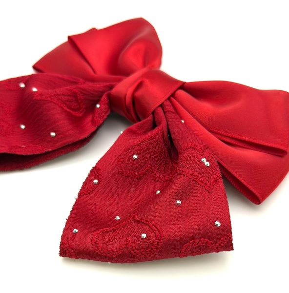 落ち着いた赤のマットな生地に、さりげなく輝くラインストーンを散りばめたデザイン。