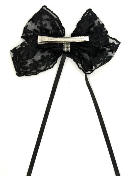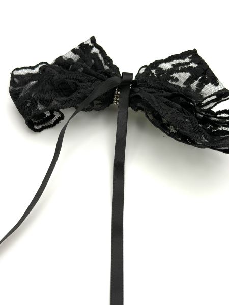 薄手の生地に繊細な花柄をあしらった黒のヘアピン。