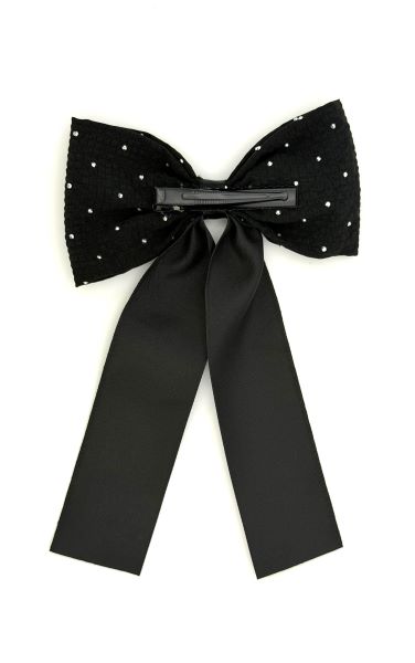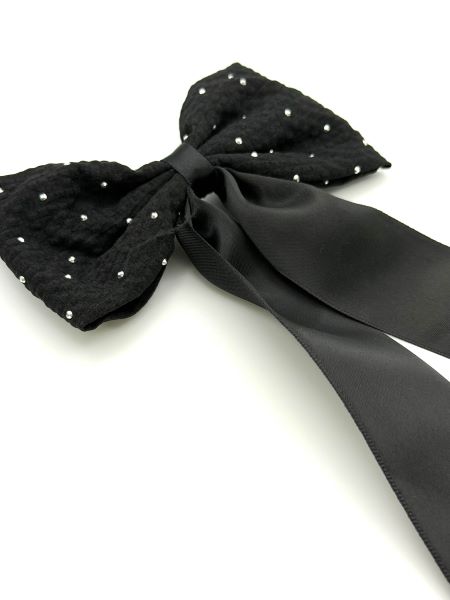 やや厚みのあるしっかりとした生地に、ラインストーンを全体に散りばめたヘアピン。