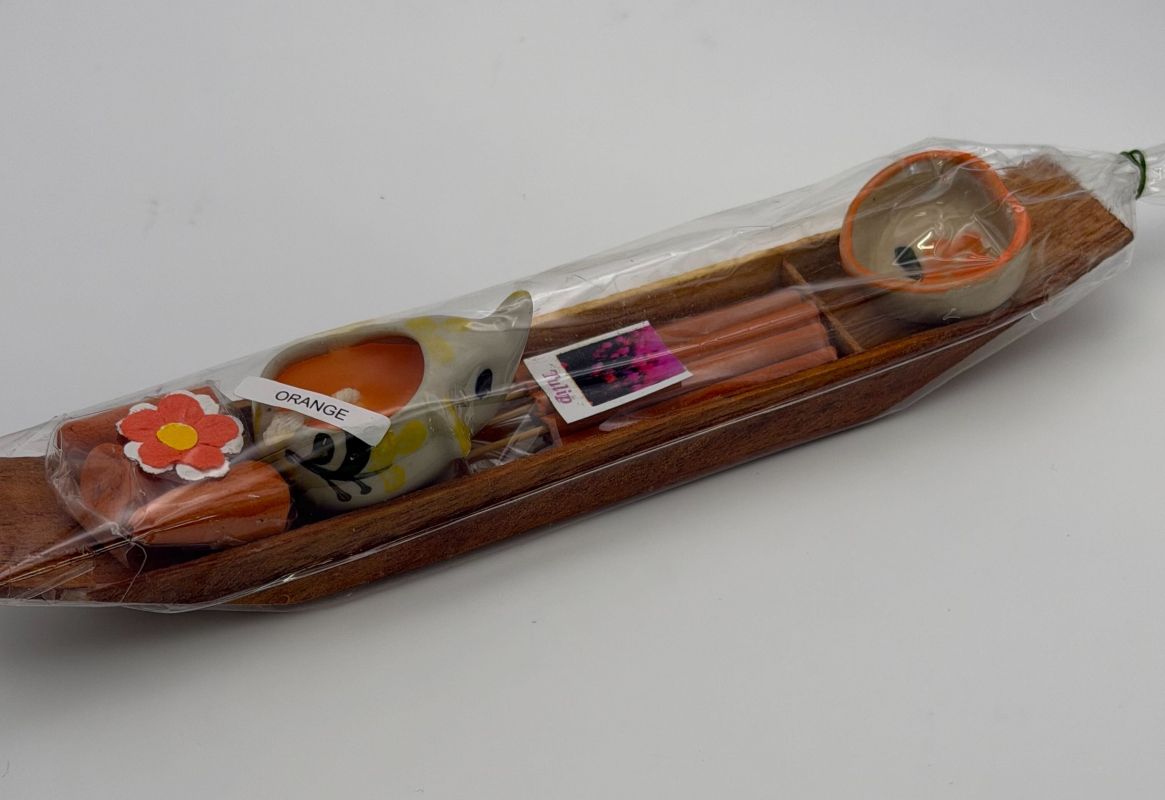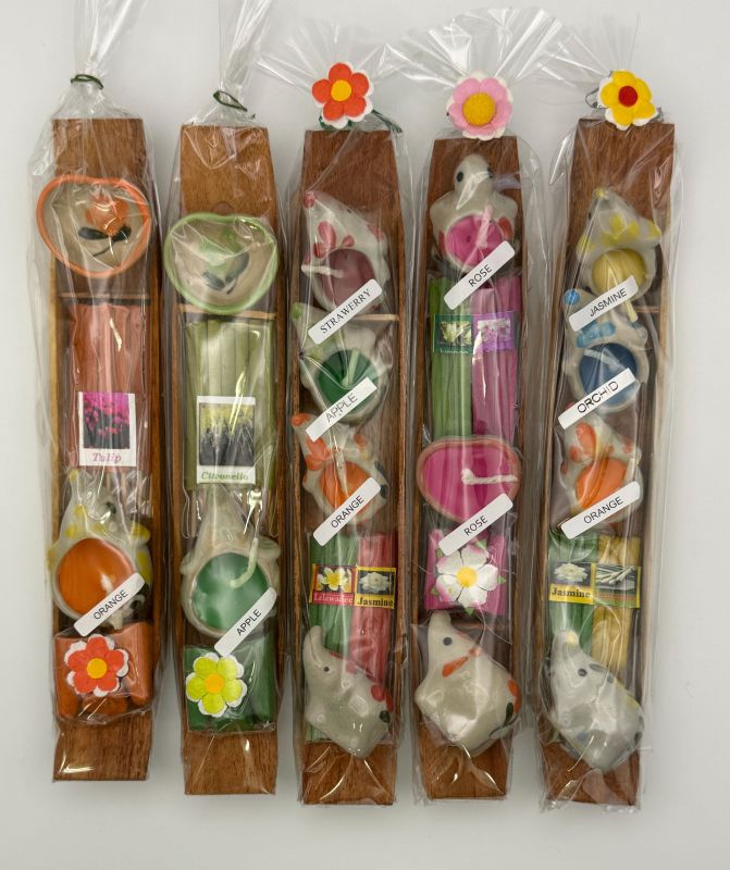 タイのアロマキャンドルとお香のセットです。お香立ては可愛らしいゾウ型で、お部屋のフレグランスや、インテリアとして飾ったりギフトとしてもピッタリです。